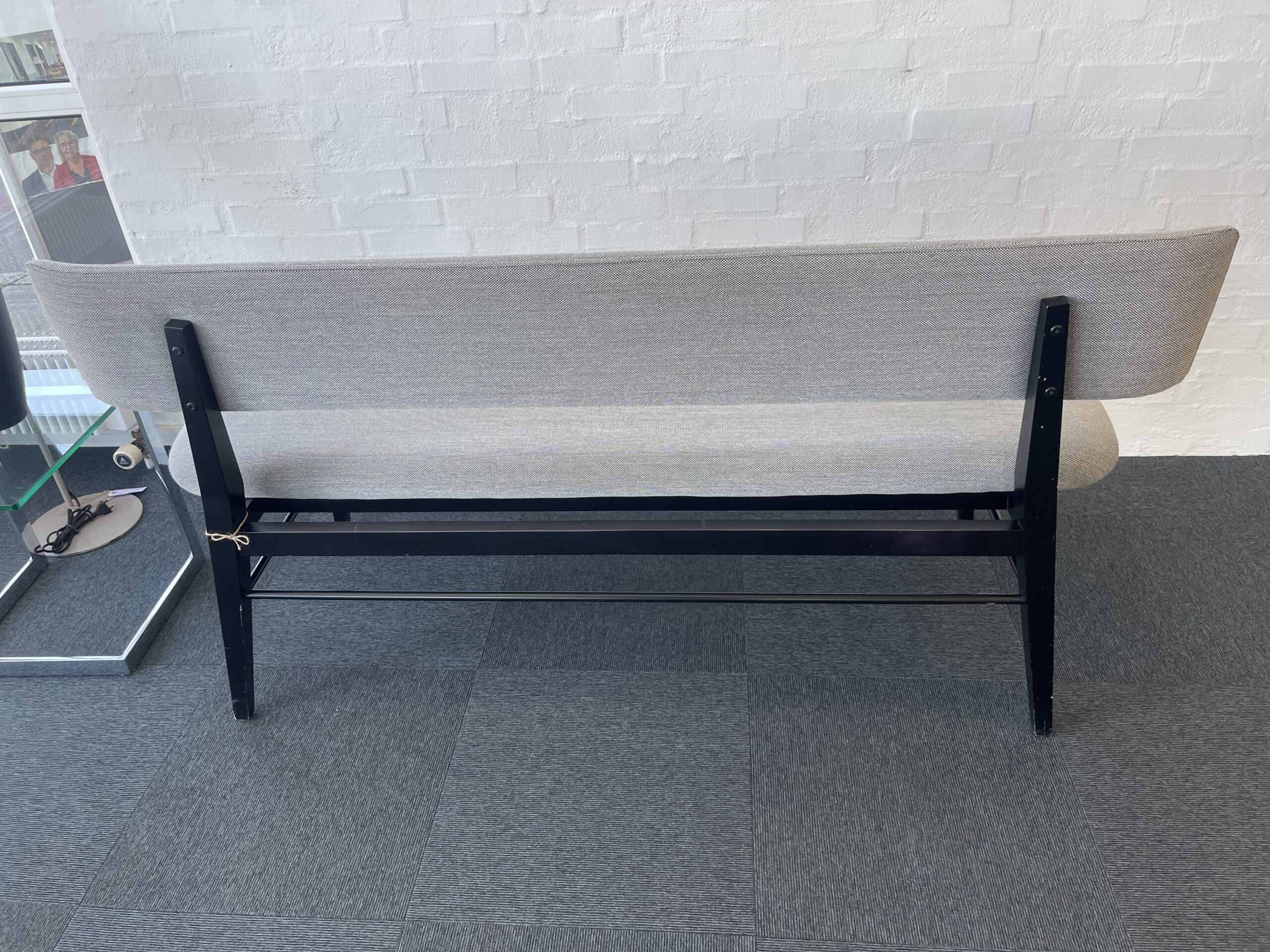 Betrukket i lysegråd kvalitets stof, stellet i sort malet træ.