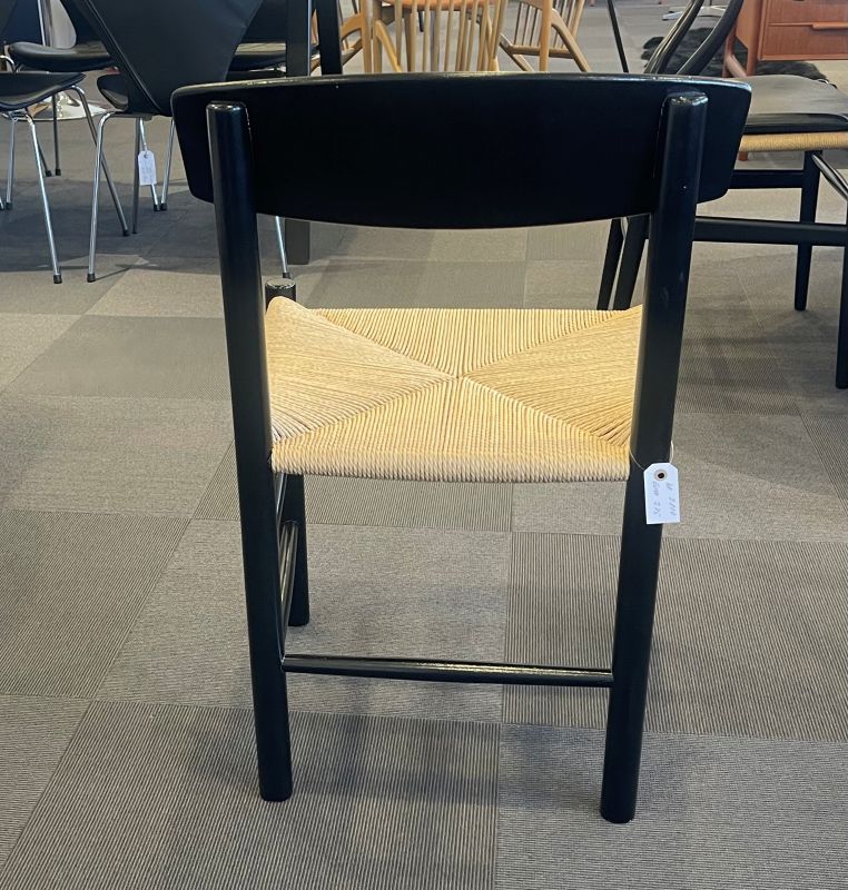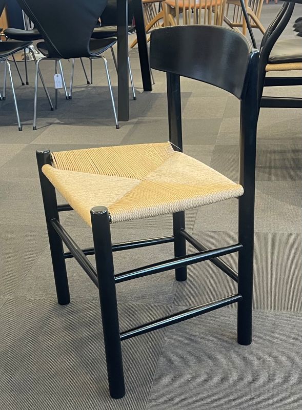 Pris kr. 2200,- Euro 305,- Børge Mogensen J 39 Folkestolen med flet og sort stel. Mål: Højde 77 cm. Bredde 48 cm. Dybde 43 cm, sædehøjde 46 cm.