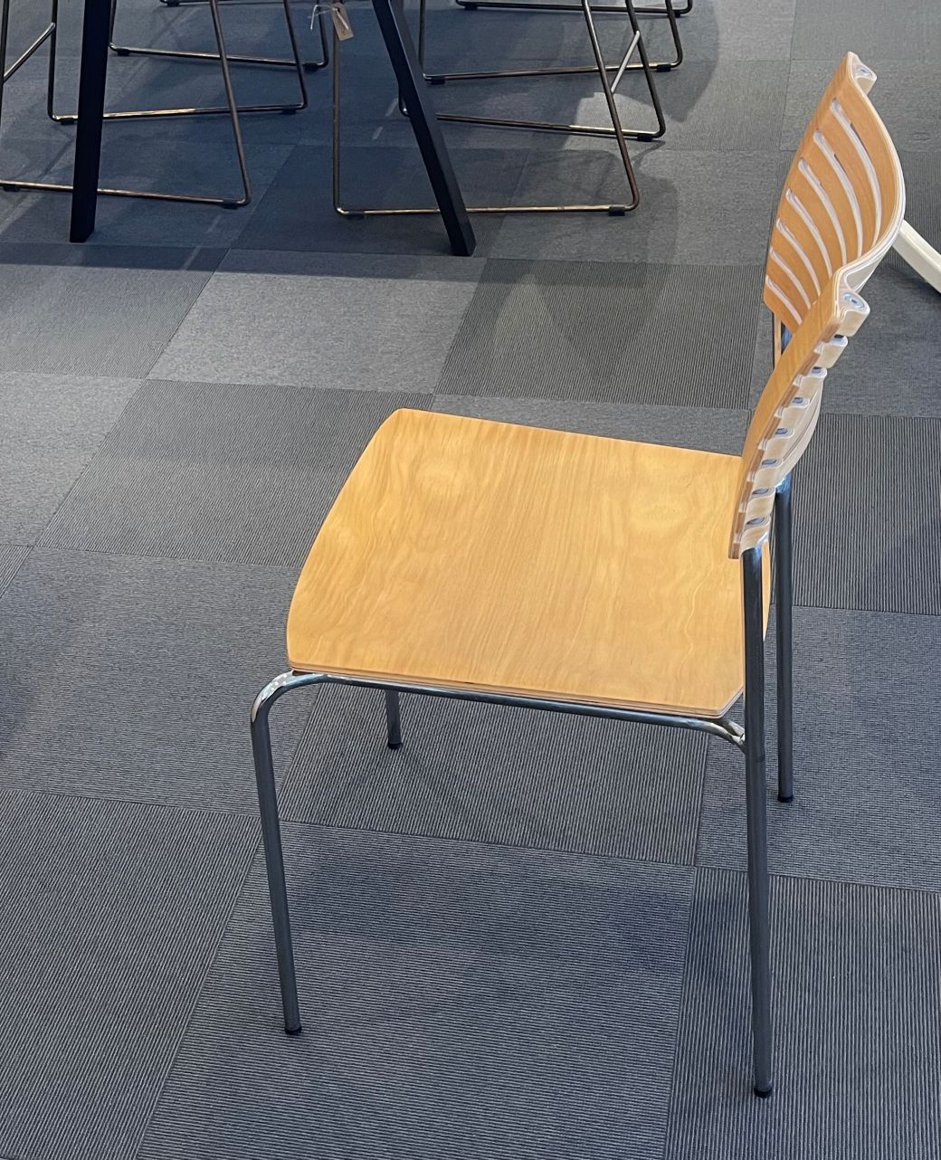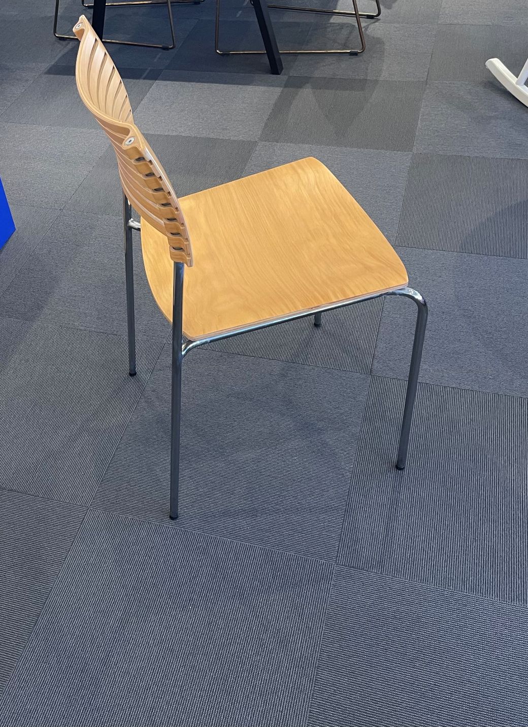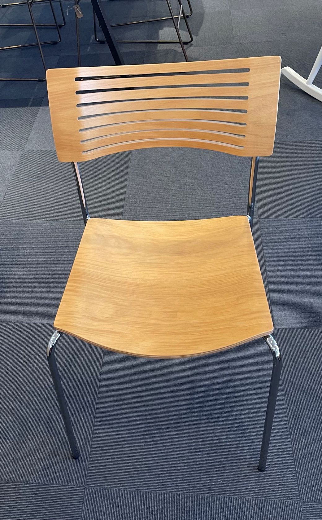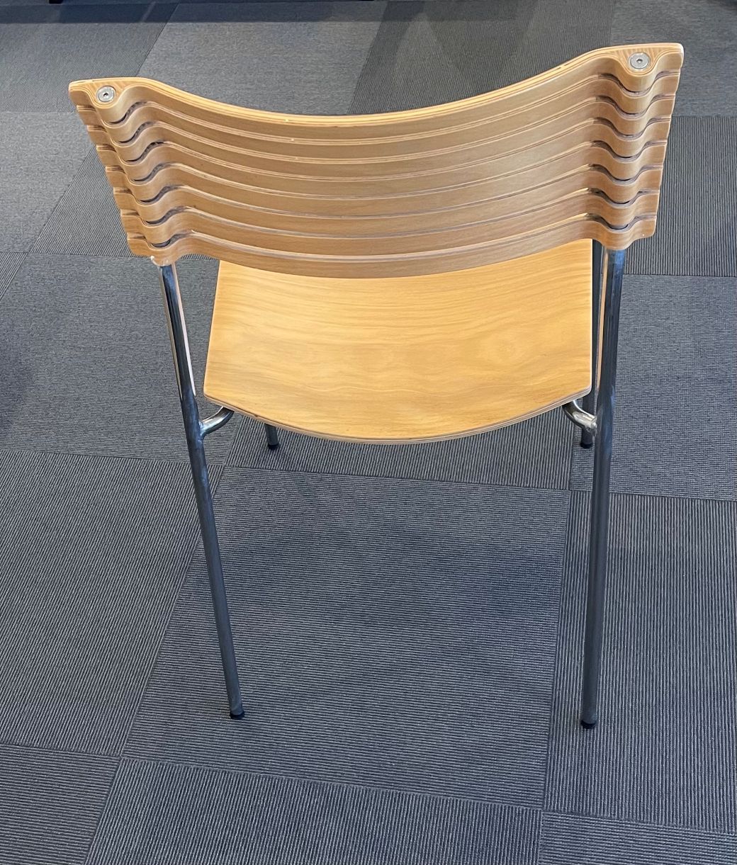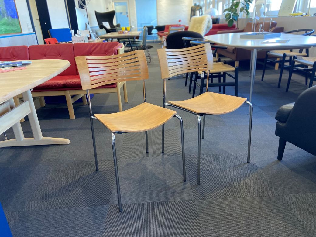 Pris pr. stk. 695,- Euro 93,- Spisebords stole 3 stk. Formspænde træ og ben i stålrør. Smart og med god siddekomfort. Mål Højde 80 cm, Bredde 46,5 længde 40 cm Siddehøjde 45 cm.